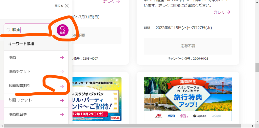 映画チケット割引のために進むべき ページ遷移について