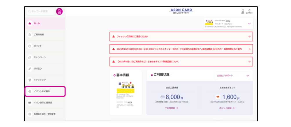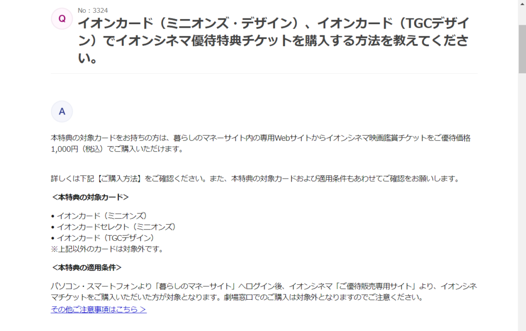 左のメニュー → カードを選ぶ → イオンカード(ミニオンズ)→詳しく→ カードの特徴 → イオンシネマの映画料金がいつでも¥1,000(税込み) → ご購入方法はこちら
